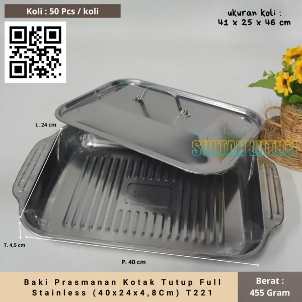Baki Prasmanan Kotak Tutup Full Stainless (40x24x4,8Cm) T221