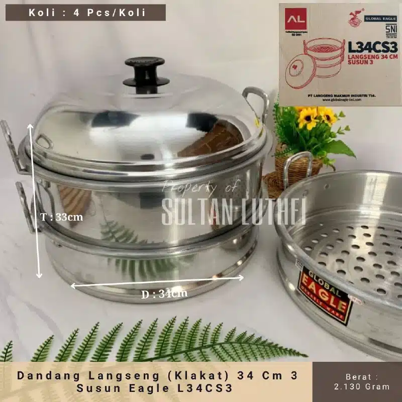 Dandang langseng Jawa. Dimensi diameter 34 cm . Terbuat dari aluminium yang tebal mengkilap. Flexible dapat dibongkar pasang sesuai kebutuhan. Cocok untuk mengukus kue basah, bak pao, dll. Terbuat dari bahan almunium berkualitas tinggi. Sangat baik digunakan dan tahan lama.