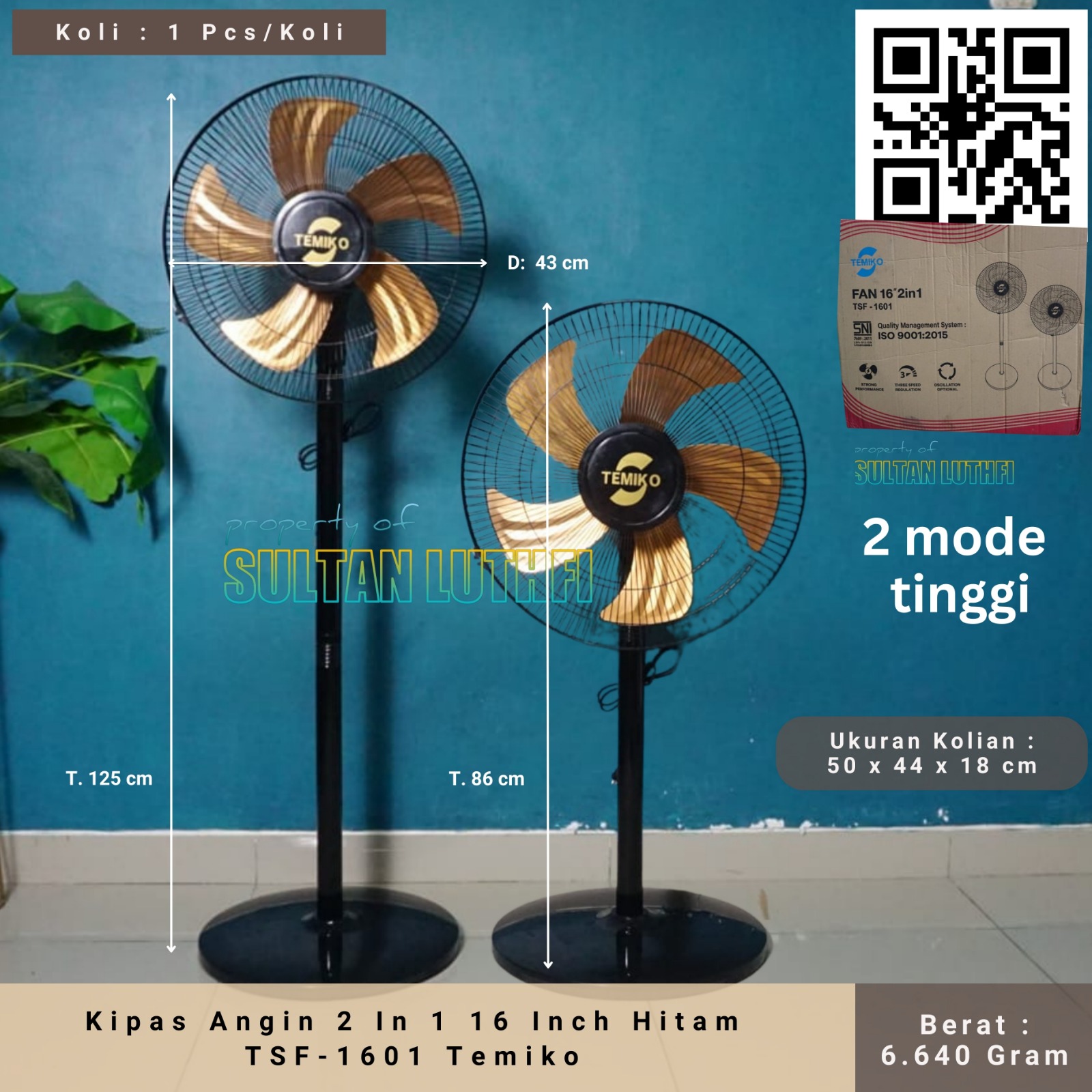 – Warna: Hitam (dengan aksen gold/emas pada baling-baling, memberikan kesan mewah).