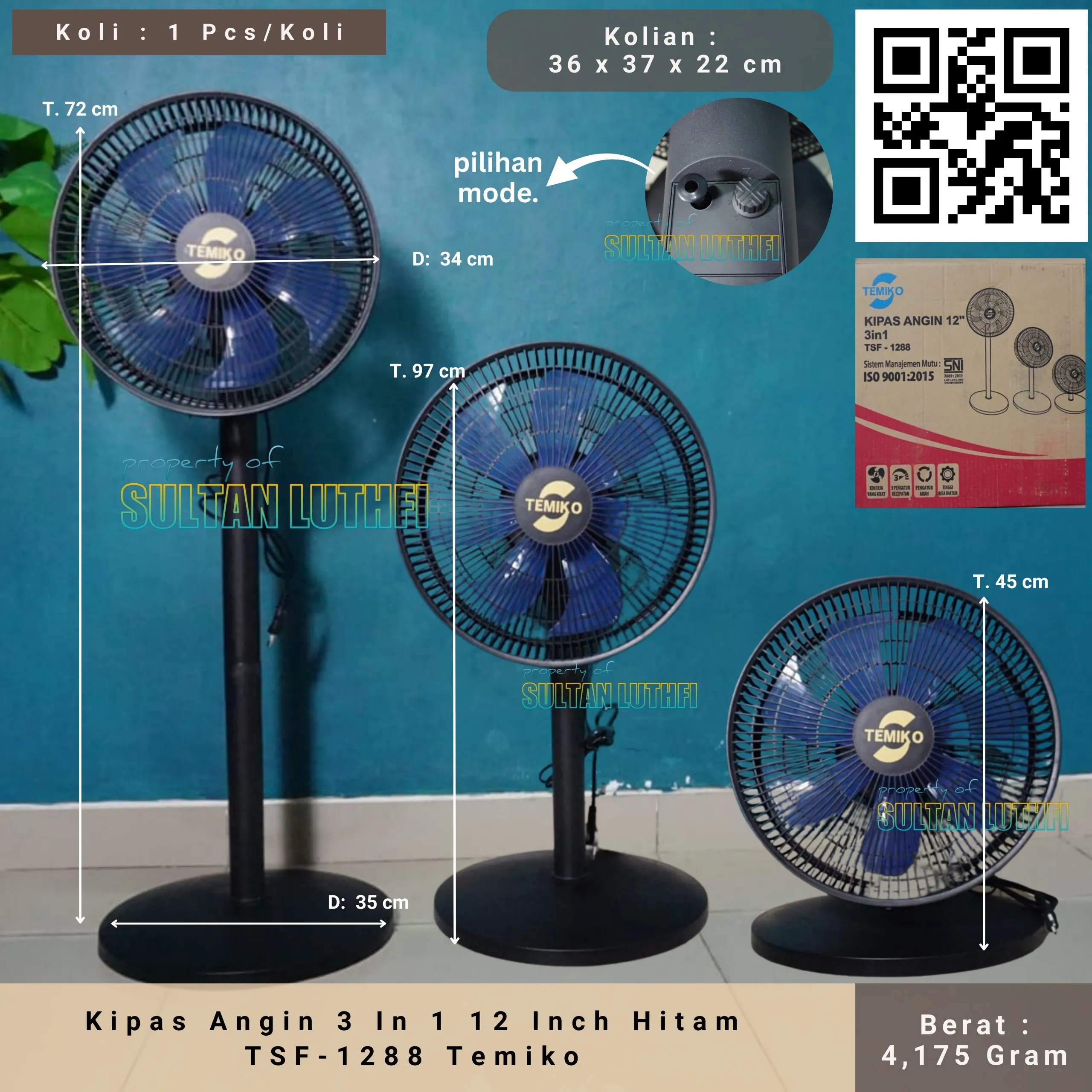 – Model 3in1: Fungsional sebagai kipas berdiri, meja, atau lantai.
