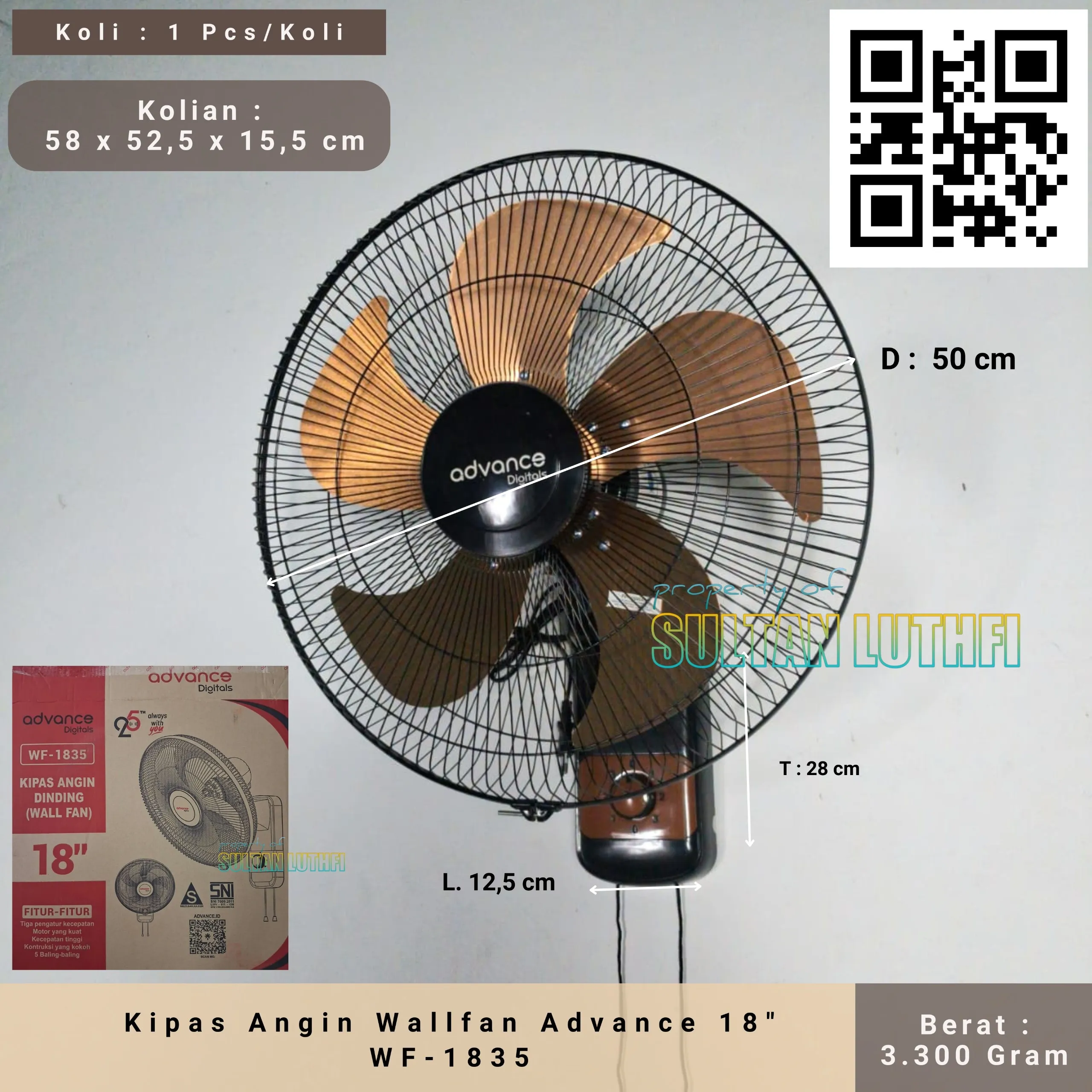 Advance WF-1835 kipas Angin Dinding Wall Fan Besi Ukuran Besar 18 inch Garansi resmi 1 tahun