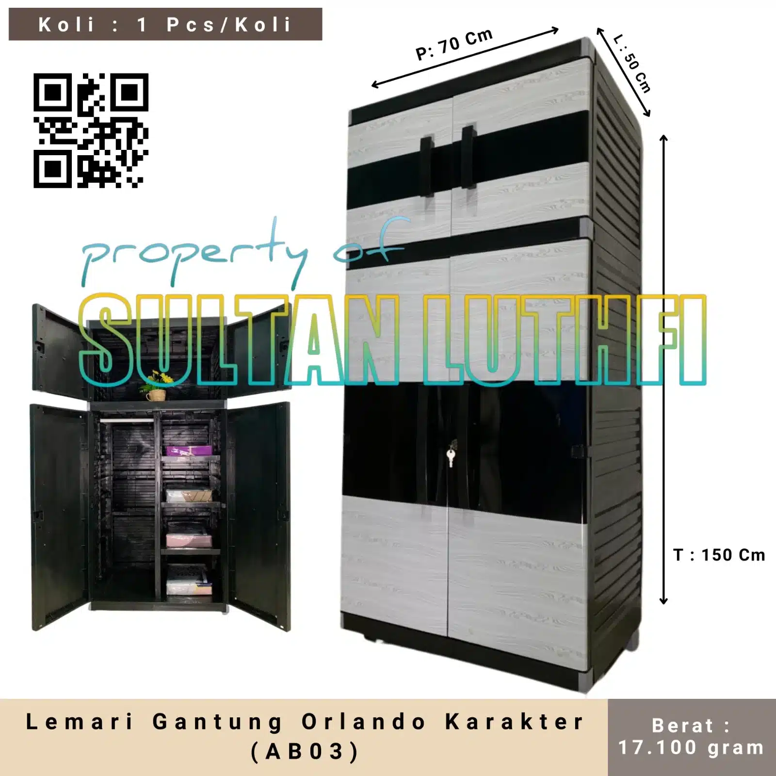Ukuran produk ( pxlxt ) : 70x50x150Cm