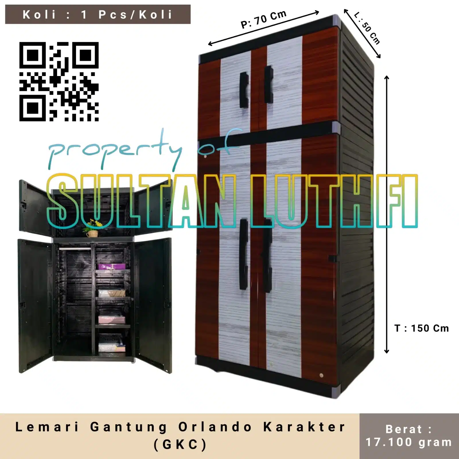 Merupakan lemari dengan design gambar yang menarik. Bagian dalam nya terdiri dari rak rak dan gantungan, pada pimtu bagian atasnya terdapat rak dan 2 pintu dibawah terdapat rak dan gantungan sehingga dapat menyimpan lebih banyak pakaian anda.