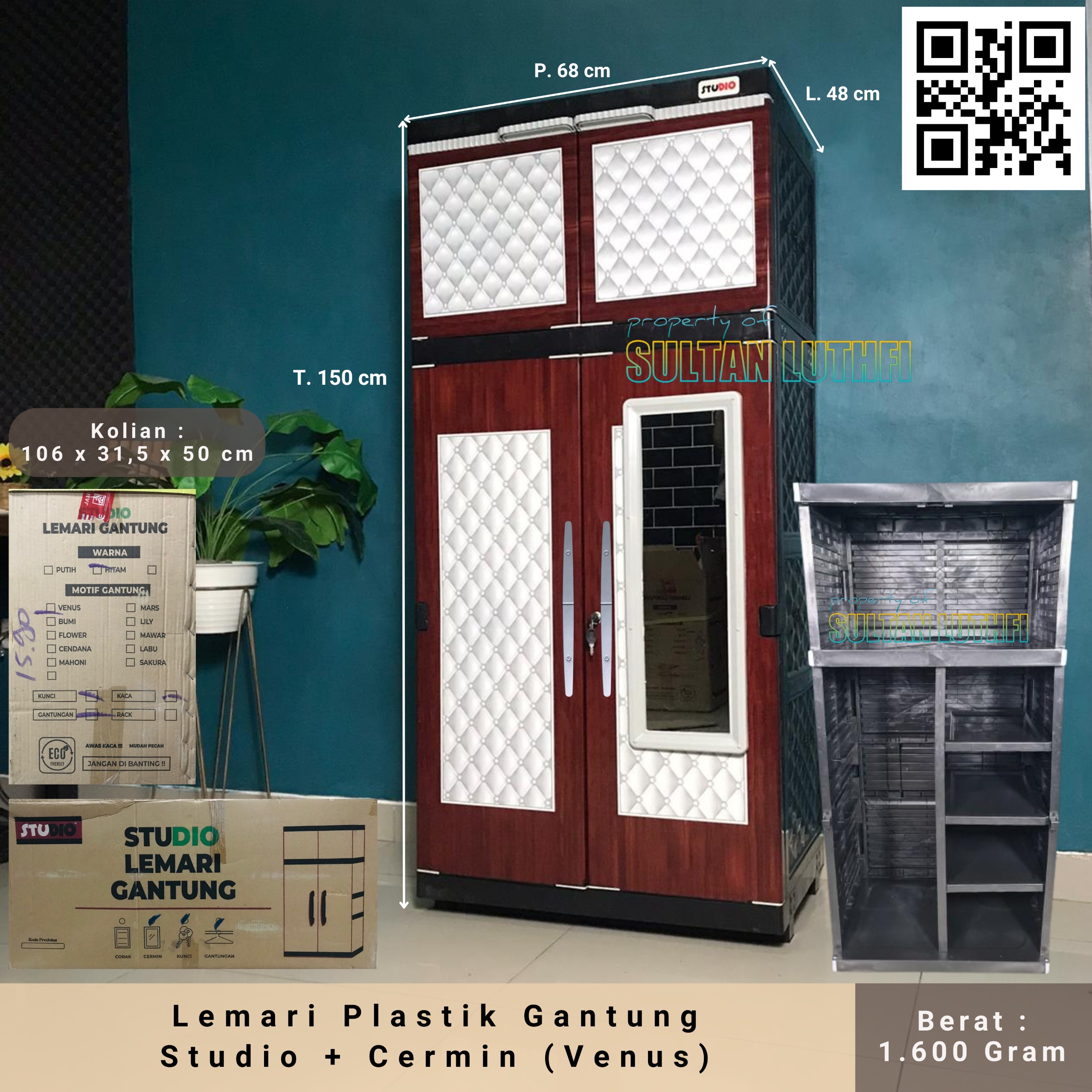 – Pintu tebal, engsel kokoh, kaki lemari yang kuat dan terdapat cermin yang luas
