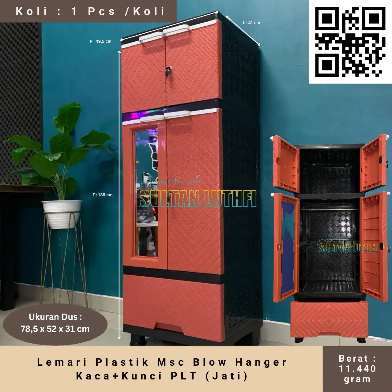 Lemari Plastik Msc Blow Hanger Kaca+Kunci PLT (Jati)