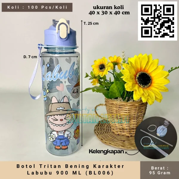 Botol Tritan Bening Karakter Labubu 900 ML (BL006)