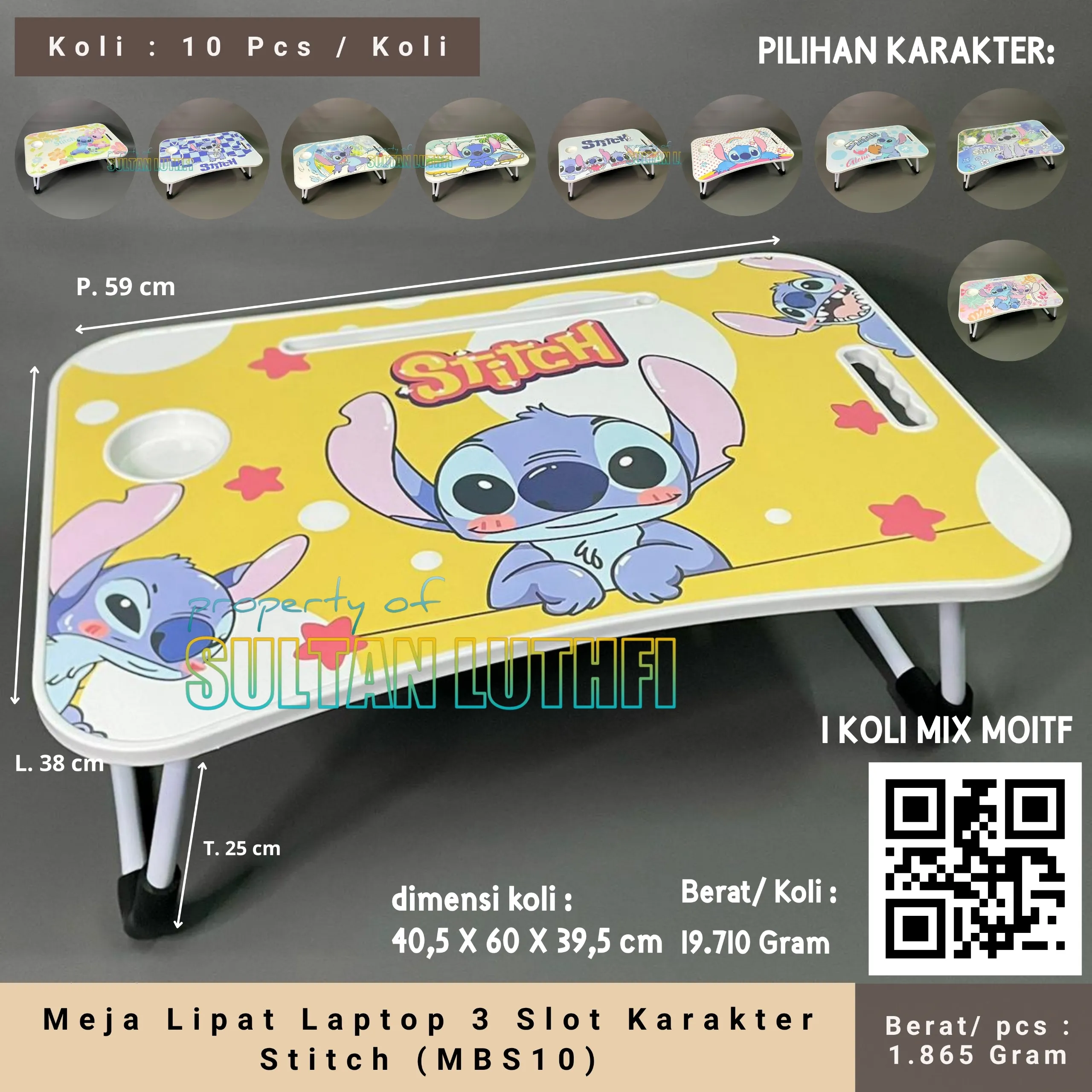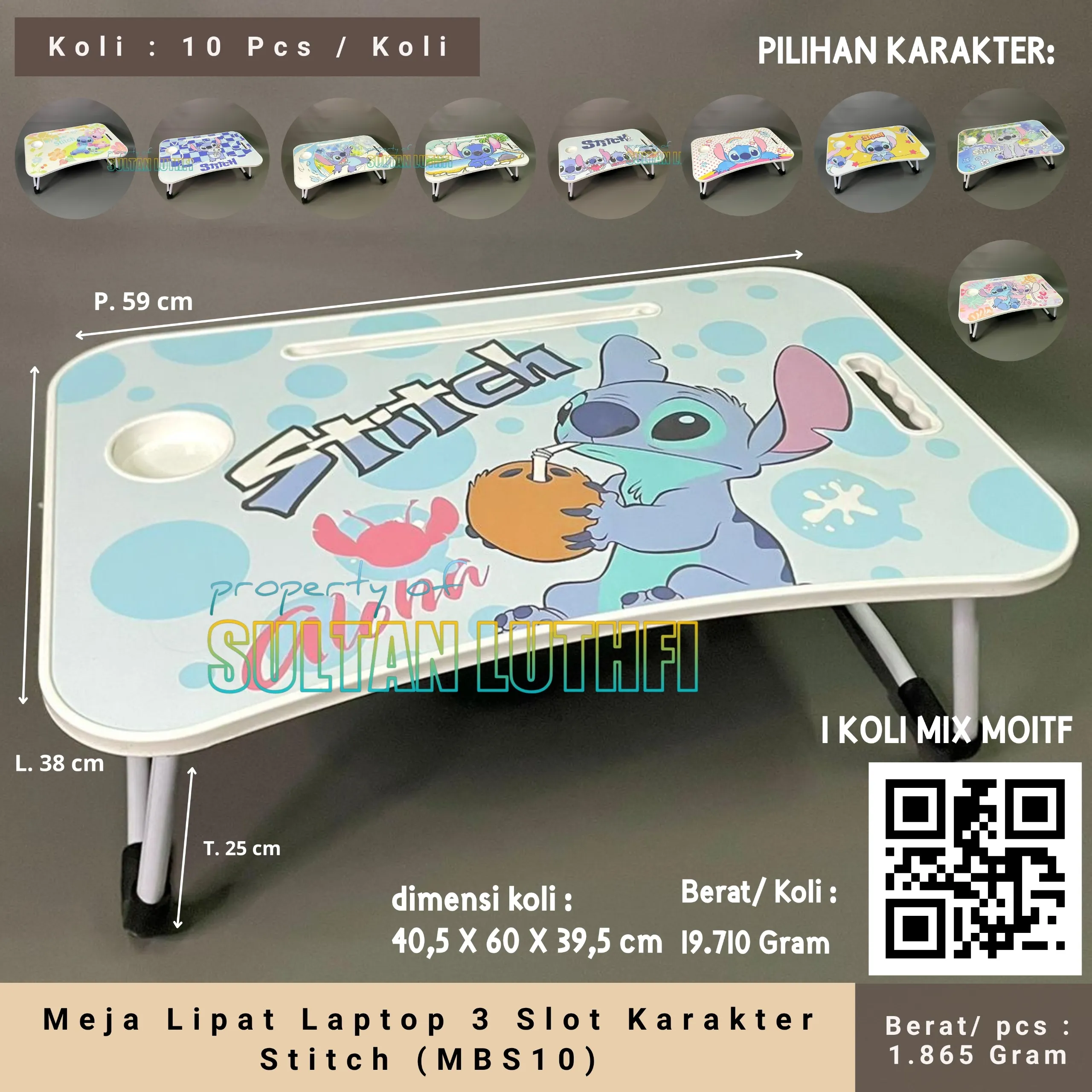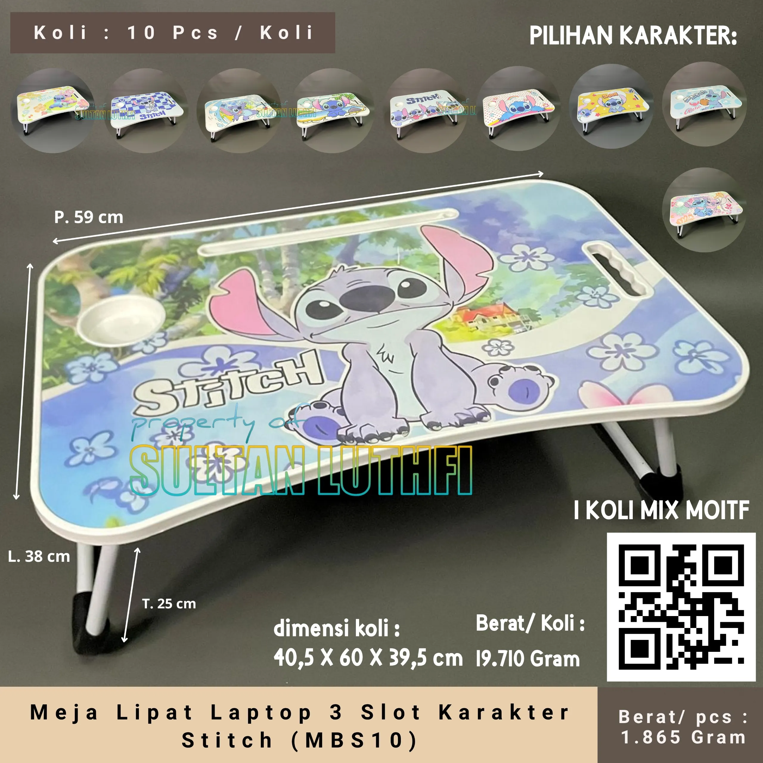 Meja Lipat Laptop 3 Slot Karakter Stitch (MBS10)