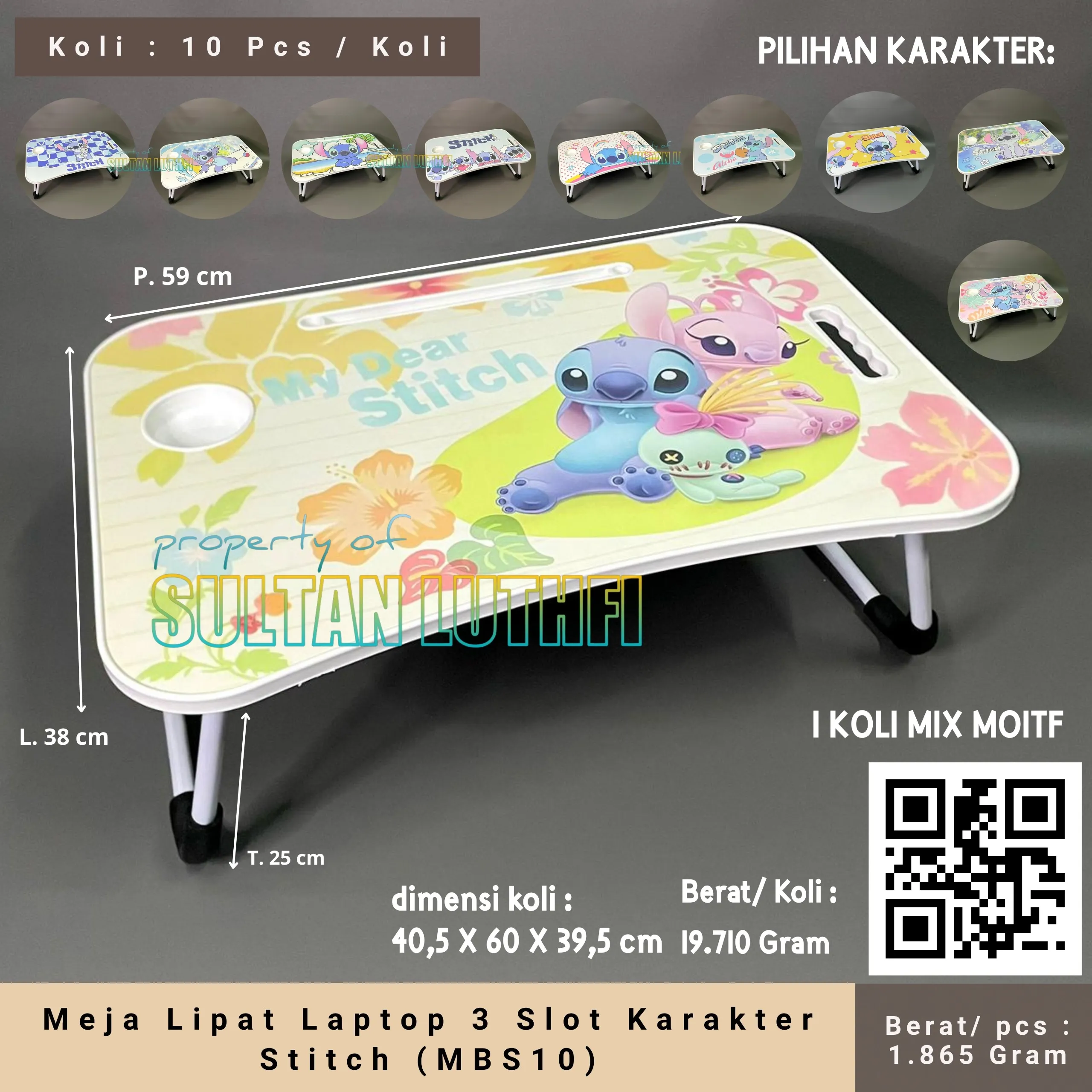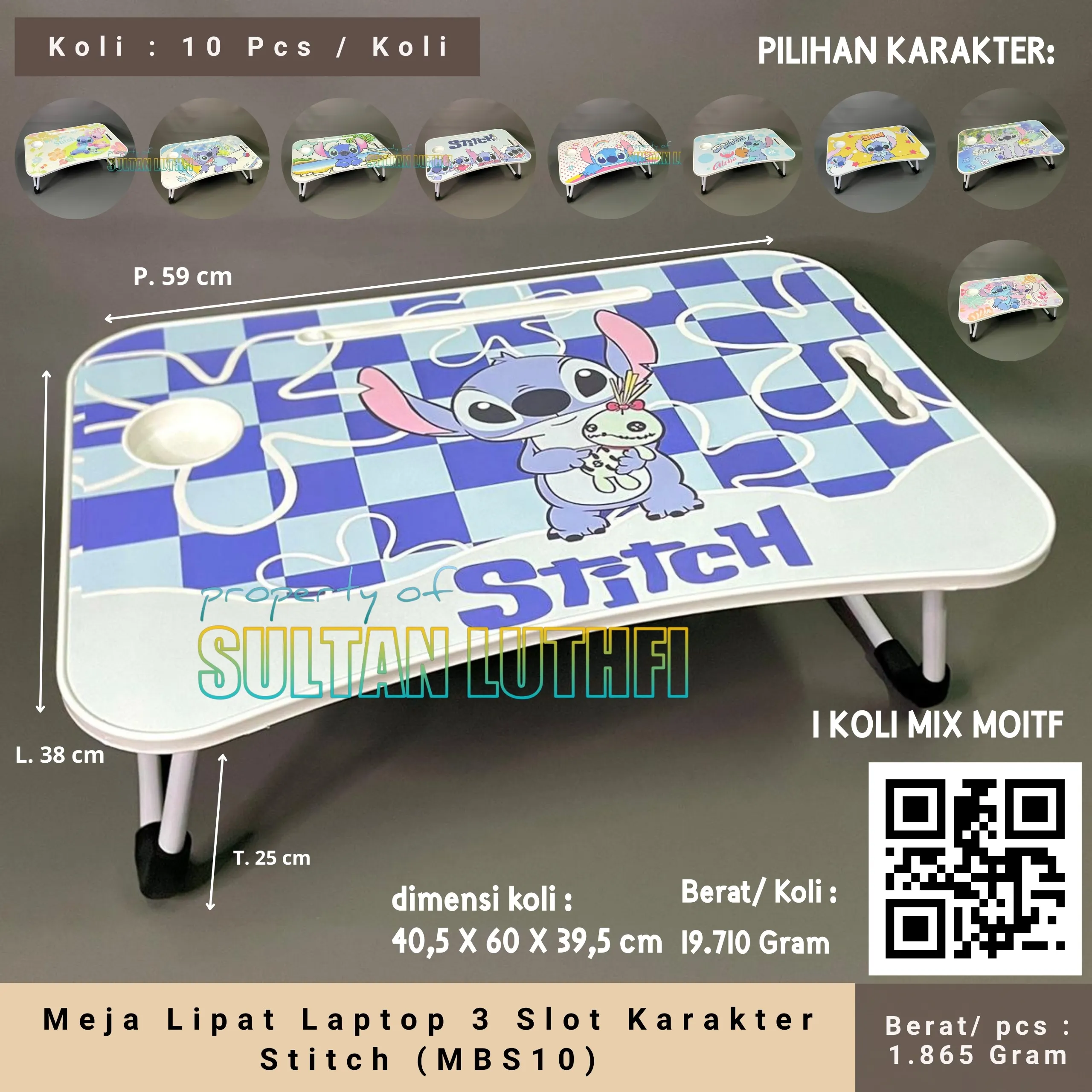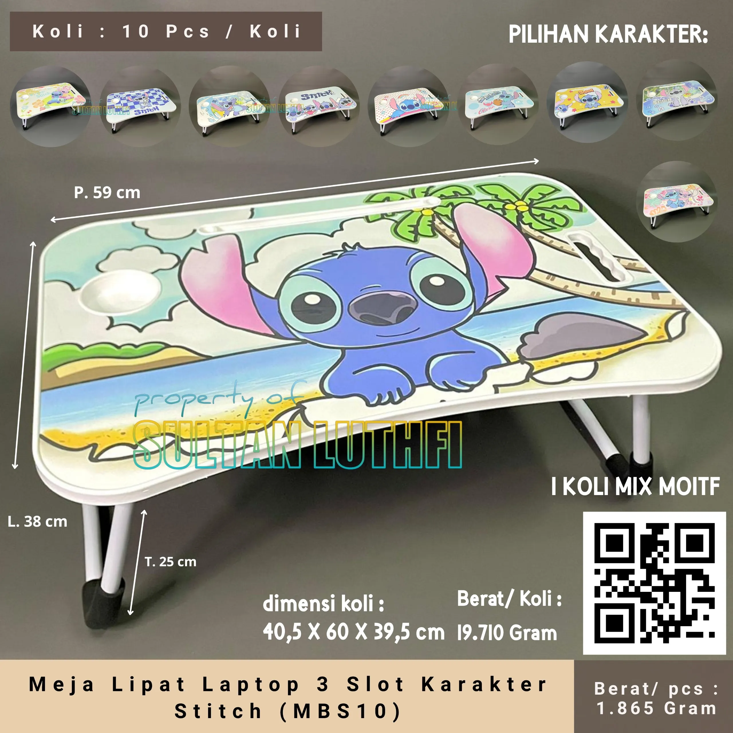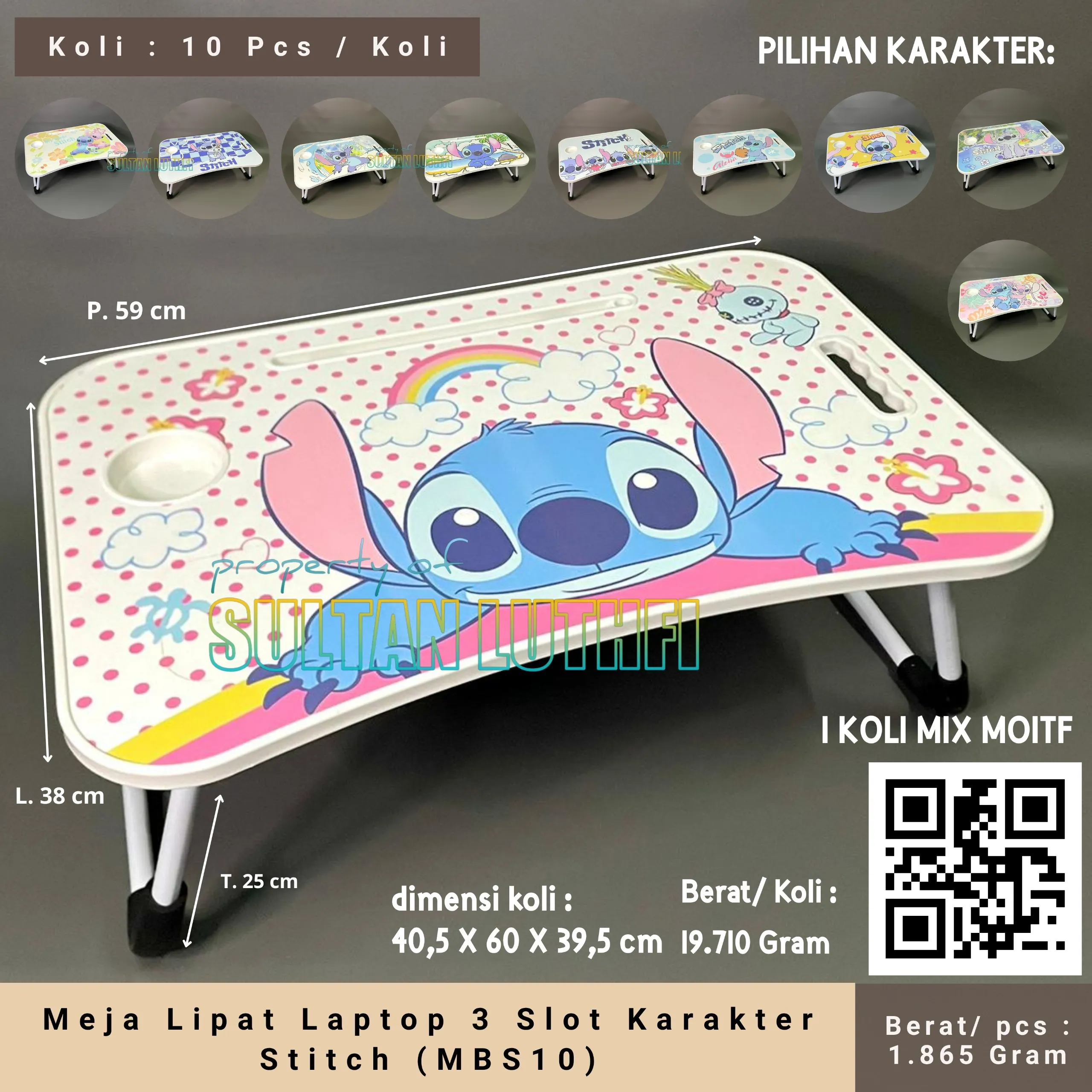 Meja Lipat Laptop 3 Slot Karakter Stitch (MBS10)