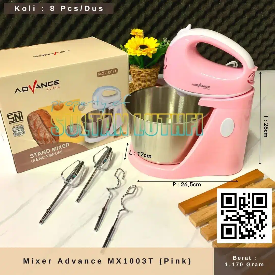 Advance Mixer Com MX1003T Menggunakan motor yang kuat, serta desain beater dan kneader yang inovatif, membuat adonan,mengembang sempurna dan kalis. ADVANCE MX-1003T dilengkapi dengan 7 pilihan kecepatan yang ideal untuk mencampur, mengocok dan mengaduk. Terdapat sebuah tombol turbo yang memberikan kecepatan maksimal untuk bahan-bahan yang sulit dihancurkan.