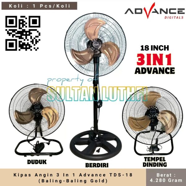 Kipas Angin 3 In 1 Advance TDS-18 (Baling-Baling Gold)