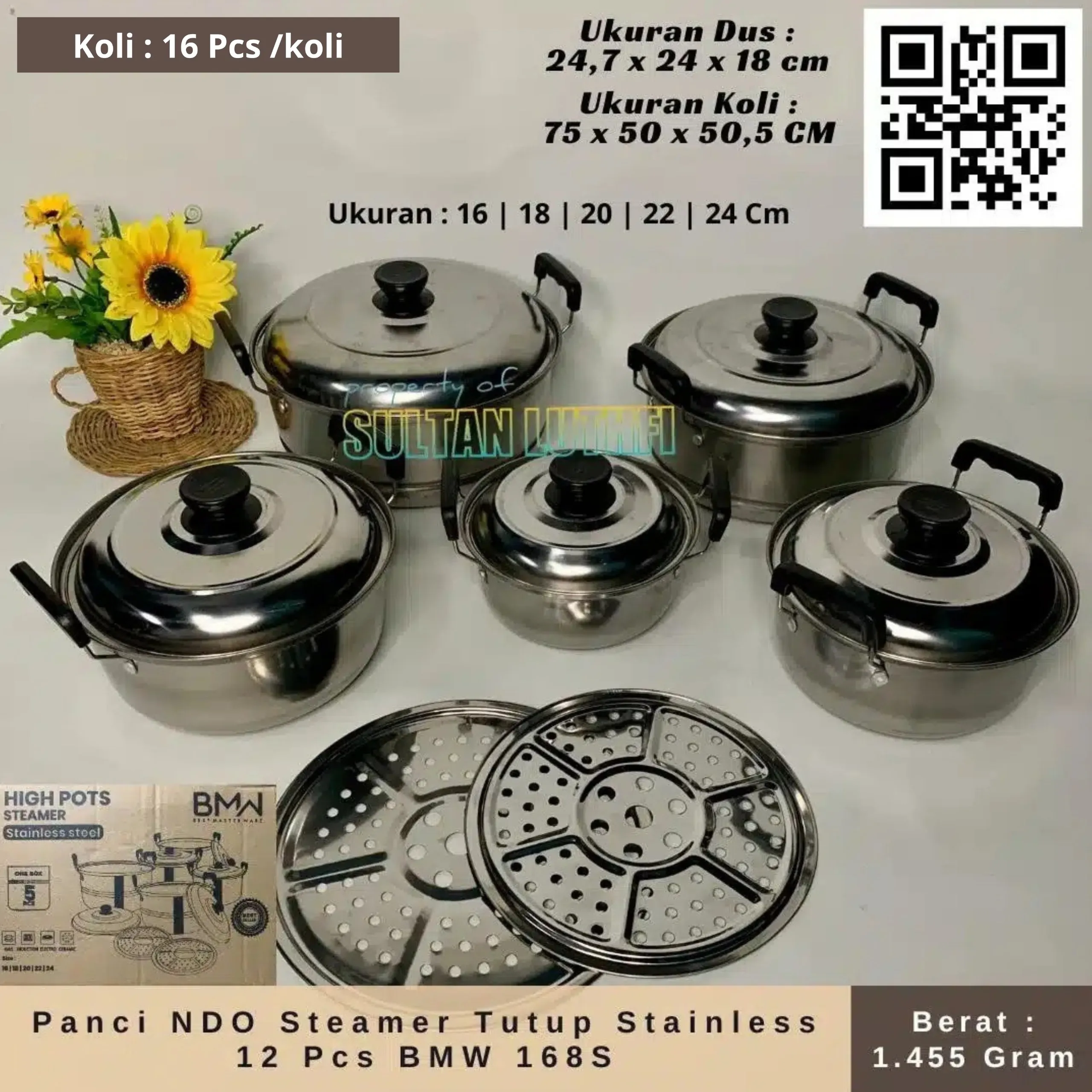 Panci NDO Steamer Tutup Stainless 12 Pcs BMW 168S(tidak bisa reatur)