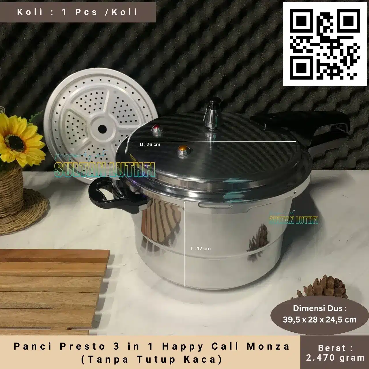 Panci Presto 3 in 1 Happy Call Monza dilengkapi steamer dan tutup kaca