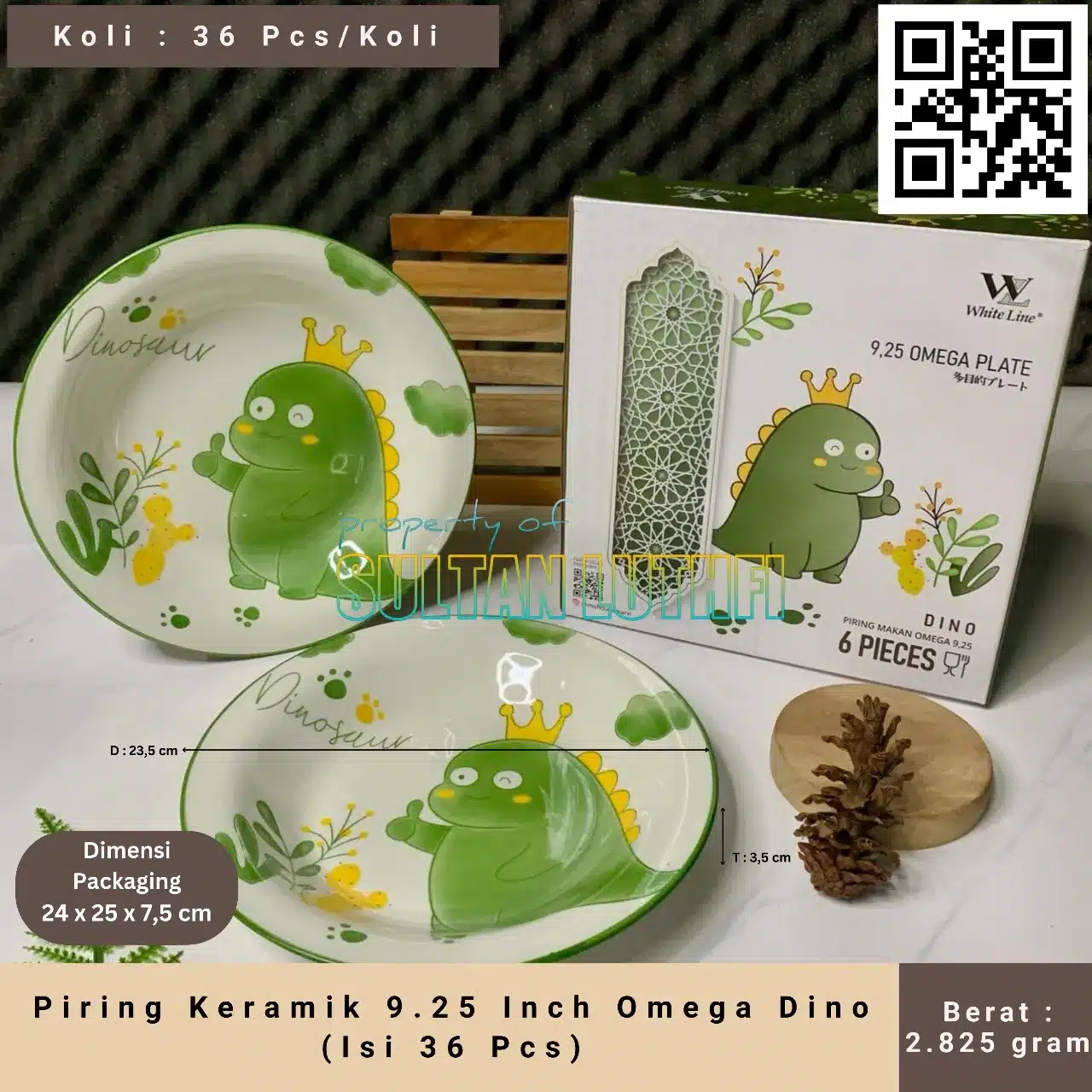 Piring Keramik 9.25 Inch Omega Dino (Isi 6 Pcs)