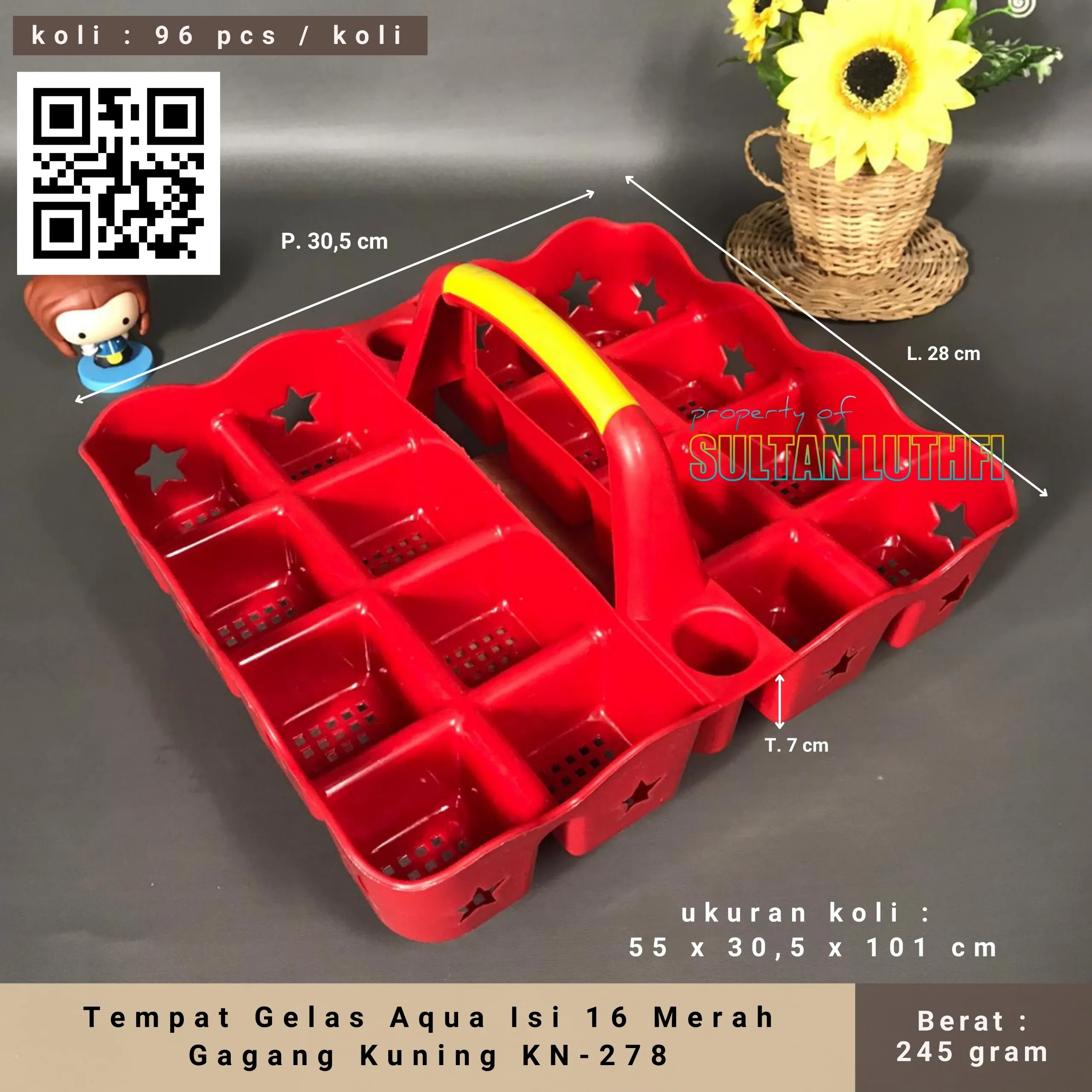 Tempat Gelas Aqua Isi 16 Merah Gagang Kuning KN-278