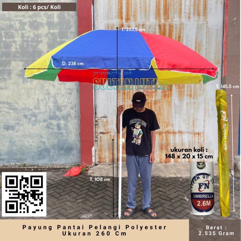 Rp77,000 - Rp58,000Payung pantai adalah payung untuk berteduh dari sinar matahari dan hujan, baik dipantai. Buat jualan kaki lima. Buat ditaman. Cafe cafe dan tempat lainny sesuai dengan ukurannya