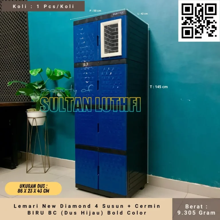 Lemari New Diamond 4 Susun + Cermin BIRU BC (Dus Hijau) Bold Color