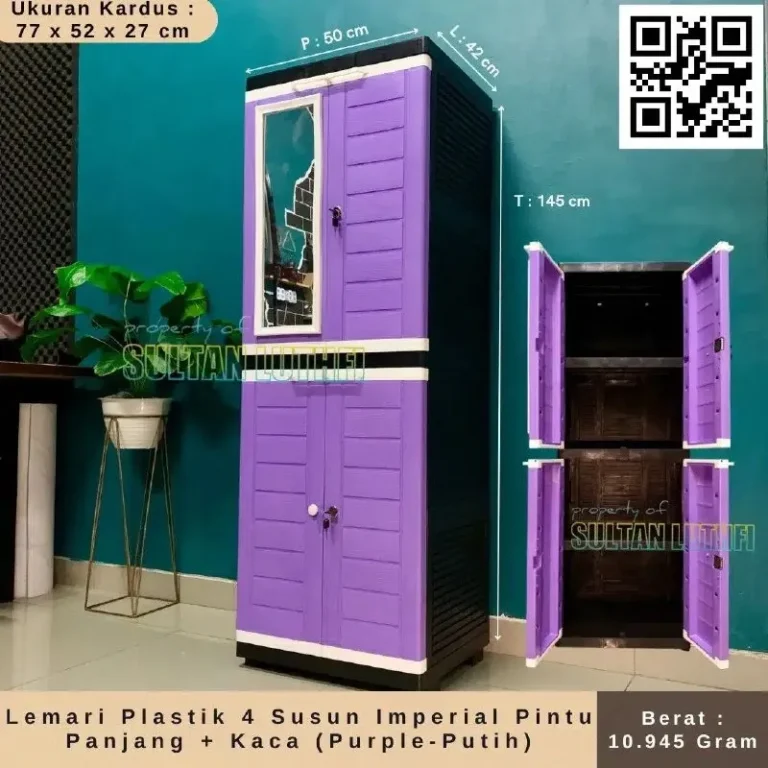 Lemari Plastik 4 Susun Imperial Pintu Panjang + Kaca (Purple-Putih)